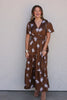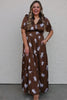 This half-sleeve surplice maxi dress features a floral satin print with tiered layers, an elastic waistband, and convenient pockets, making it an ideal choice for transitioning into fall.